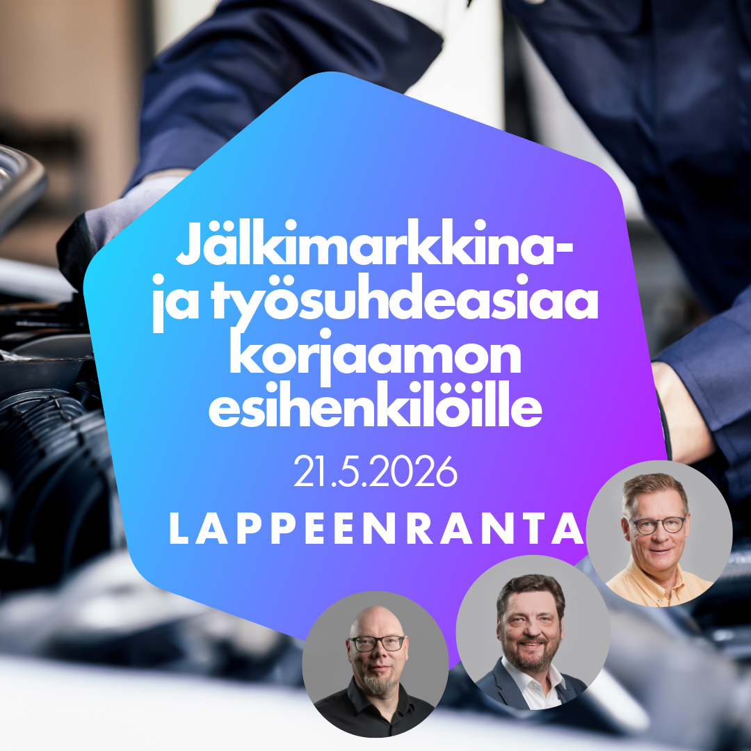 Koulutuksessa saat kattavan kuvan korjaamojen nykytilanteesta ja mahdollisuuksista sekä tietoa siitä, miten toimia työsuhteisiin liittyvissä tilanteissa. Tutustu päivän ohjelmaan alla tarkemmin ja ilmoittaudu mukaan.